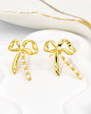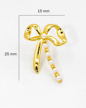 Topo moño listón perlado, tiene baño de rodio, incluye 1 par.