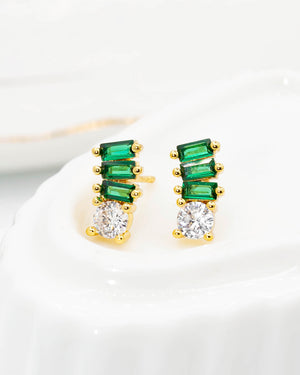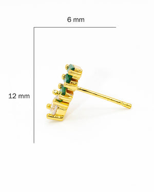 Topo piedras verdes, tiene baño de rodio, incluye 1 par.