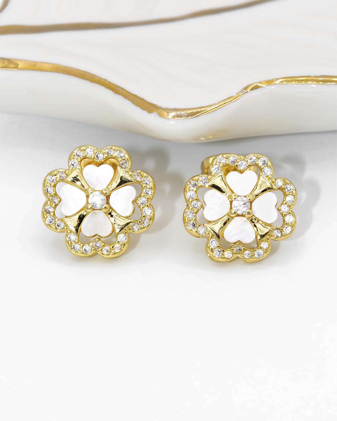 Topo trébol nácar, tiene baño de rodio, incluye 1 unidad.
