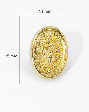 Topo virgen Guadalupe ovalado, tiene baño de rodio, incluye 1 unidad.