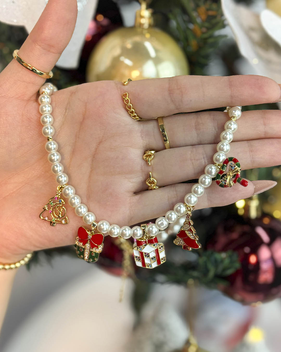 Collar navideño, tiene baño de rodio, incluye 1 unidad.