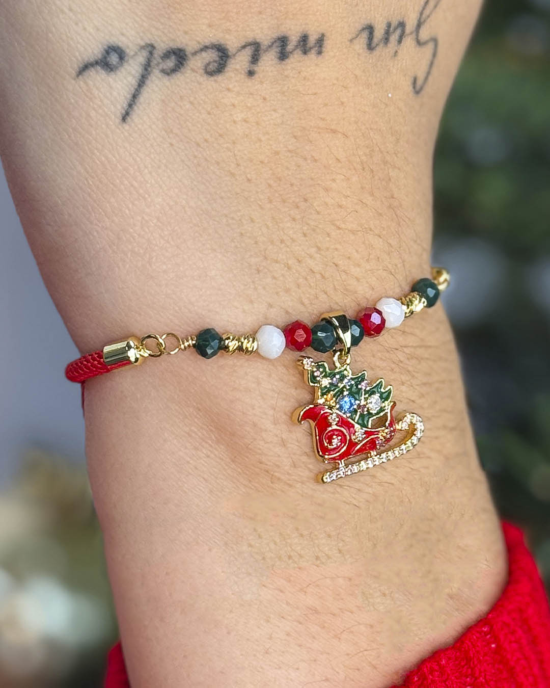Pulsera navideña cordon roja, tiene baño de rodio, incluye 1 unidad.