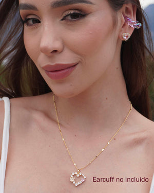 Set corazón (NO INCLUYE EARCUFF), tiene baño de rodio, incluye 1 unidad.