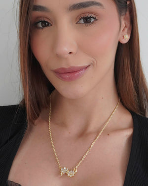 Set flor (NO INCLUYE EARCUFF), tiene baño de rodio, incluye 1 unidad.