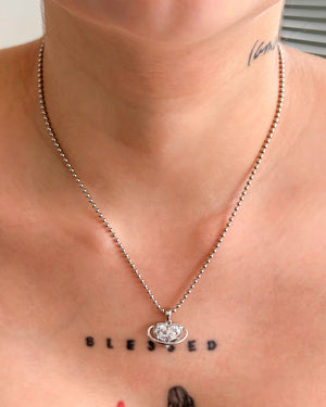 Set corazón plateado, tiene baño de rodio e incluye 1 unidad.