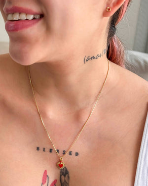 Set corazón rojo, tiene baño de rodio e incluye 1 unidad.