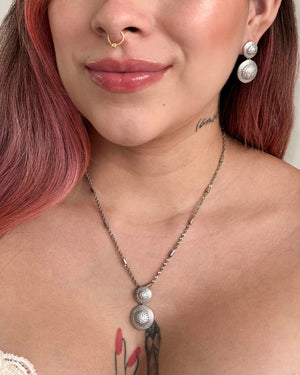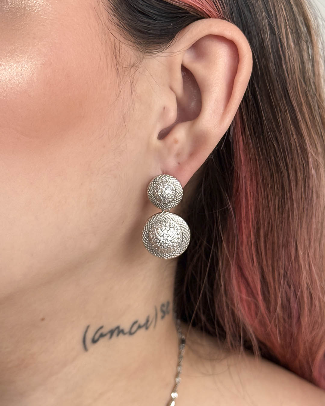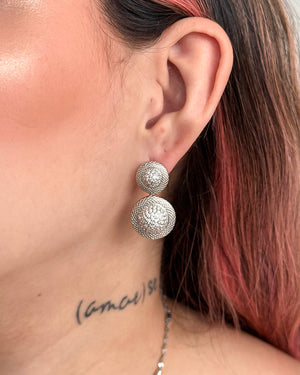 Set doble circulo plateado, tiene baño de rodio e incluye 1 unidad.