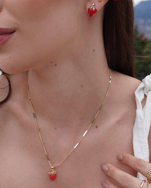 Set de fresa (NO INCLUYE EARCUFF), tiene baño de rodio, incluye 1 unidad.