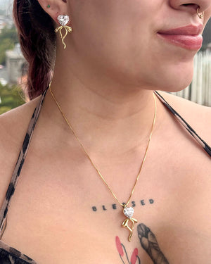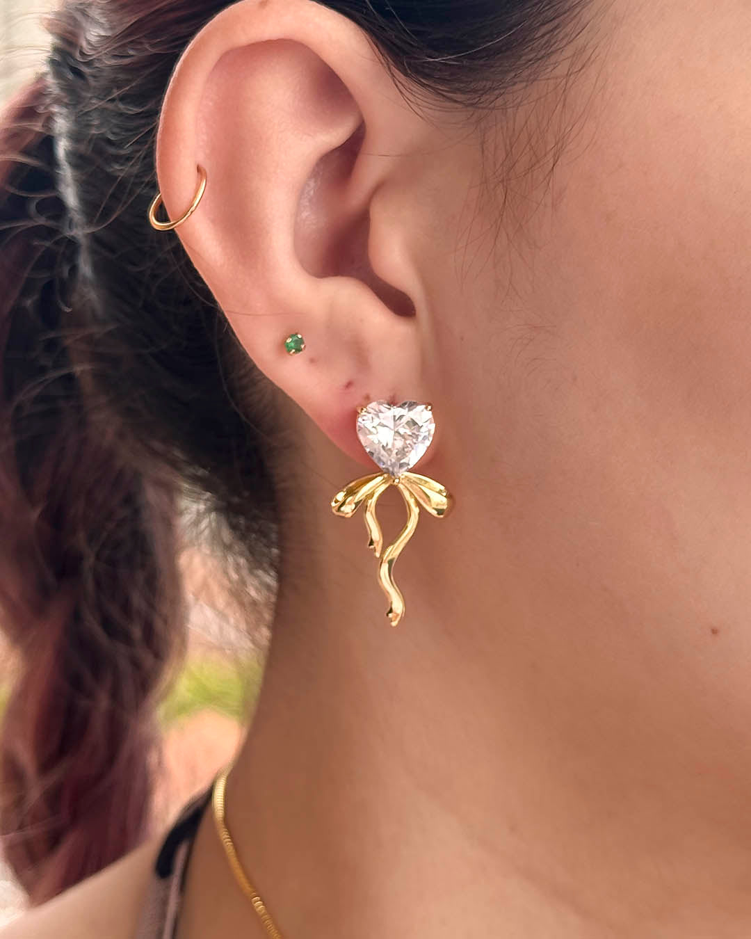 Set moño listón dorado, tiene baño de rodio e incluye 1 unidad.